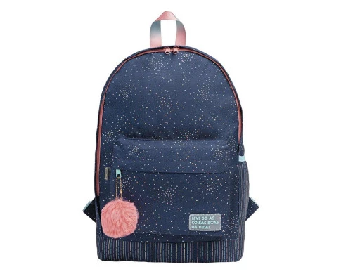 Mochila Escolar Académie Dots com Frase Azul - Tilibra