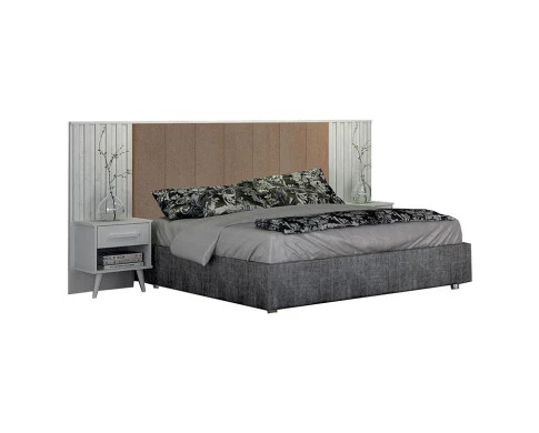 Painel Cabeceira Casal Queen Milano Estofada com Criado Branco Joli Camurça – Leifer Móveis