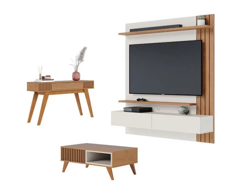 Painel para Tv Home Suspenso Juriti 1.5 Off White Matte Freijó – Colibri