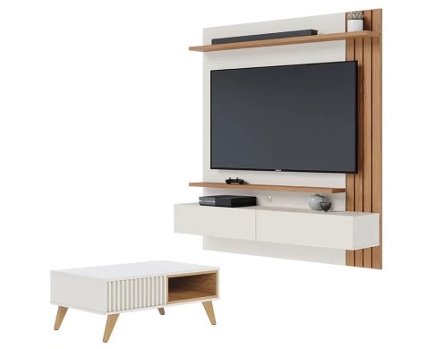 Painel para Tv Home Suspenso Juriti 1.5 Off White Matte Freijó com Mesa de Centro Jeri Off White Freijó - Colibri