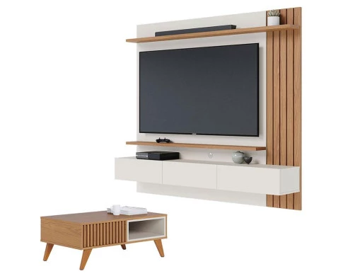 Painel para Tv Home Suspenso Juriti 1.8 Off White Matte Freijó com Mesa de Centro Jeri Freijó Off White - Colibri