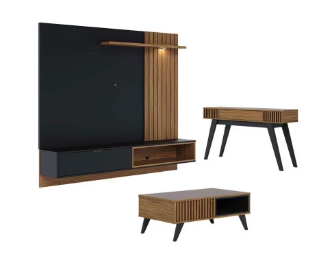 Painel para Tv Home Suspenso Tocantins 1.8 com Mesa de Centro Jeri e Aparador Riviera Preto Acetinado Noce Milano - Colibri