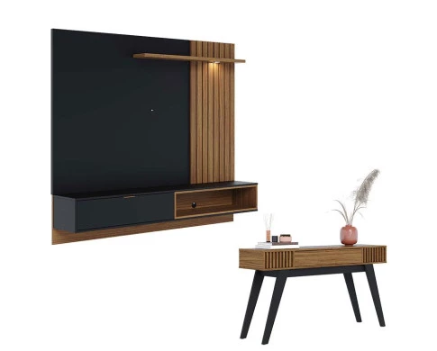 Painel para Tv Home Suspenso Tocantins 1.8 Preto Acetinado Noce Milano com Aparador para Sala Riviera Noce Milano – Colibri