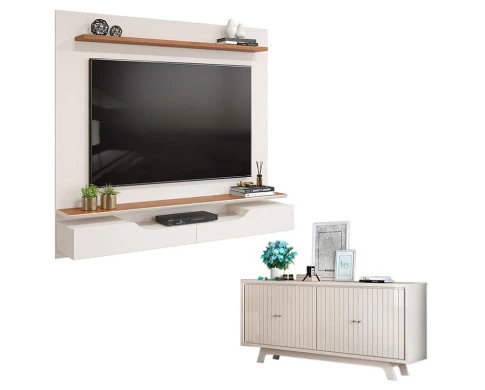 Painel para Tv Levi Off White Freijó e Aparador Buffet Mercuri Off White – DJ Móveis