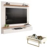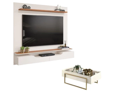 Painel para Tv Levi Off White Freijó e Mesa de Centro Pilar Off White – DJ Móveis