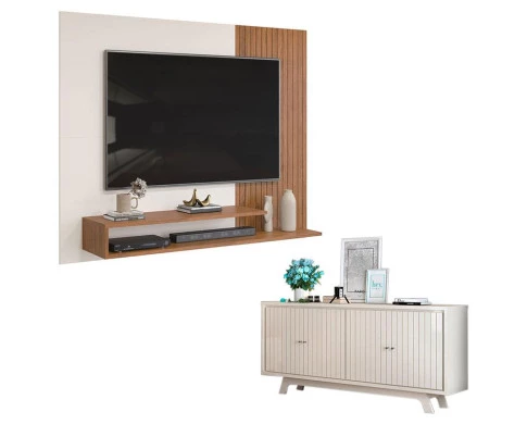 Painel para Tv Nando Freijó Off White e Aparador Buffet Mercuri Off White – DJ Móveis
