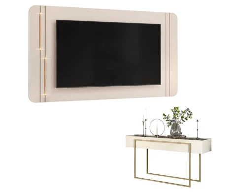 Painel para TV Suspenso Ariana e Aparador para Sala Petri Off White – DJ Móveis