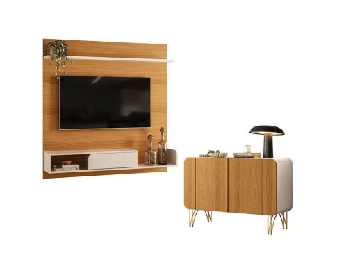 Painel para TV Suspenso Evo com Buffet Benvenuto Cinamomo Off White – HB Móveis