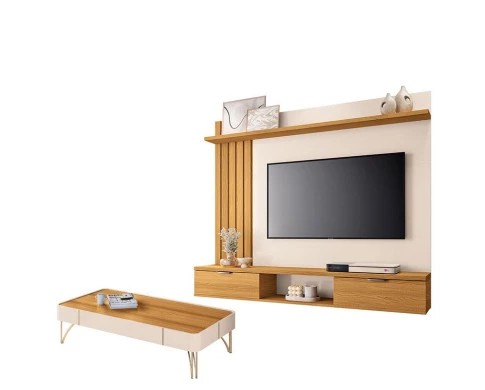 Painel para TV Suspenso Lets com Mesa de Centro Cadenza Cinamomo Off White – HB Móveis