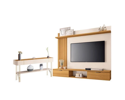 Painel para TV Suspenso Lets e Aparador Vivant Cinamomo Off White – HB Móveis