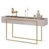 Está procurando móveis para montar sua sala? Apresentamos para você este belo conjunto composto pelo Painel para TV Suspenso e Aparador da linha Petri, fabricados pela DJ Móveis. O painel possui duas prateleiras e um nicho, é perfeita para acomodar seus aparelhos eletrônicos e objetos decorativos. O aparador possui tampo com espelho aplicado entrega um charme especial, valorizando o ambiente, as laterais são chanfradas agregando elegância e delicadeza, enquanto seus pés de metal na cor dourado oferece um design moderno e luxuoso. Combinando praticidade, design e sofisticação, é perfeito para quem está buscando qualidade e sustentabilidade para elevar o estilo do seu ambiente. Confira e aproveite!