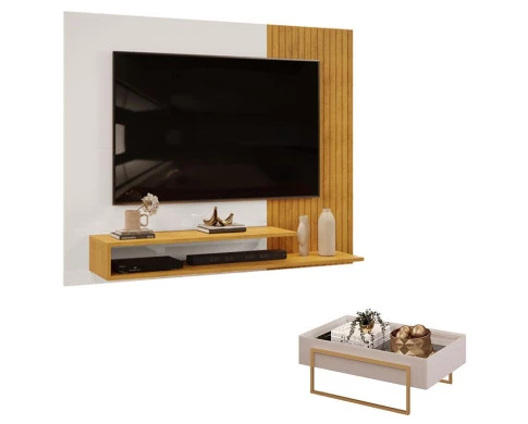 Painel para TV Suspenso Nando Cedro Bali e Mesa de Centro Suri Bali – DJ Móveis