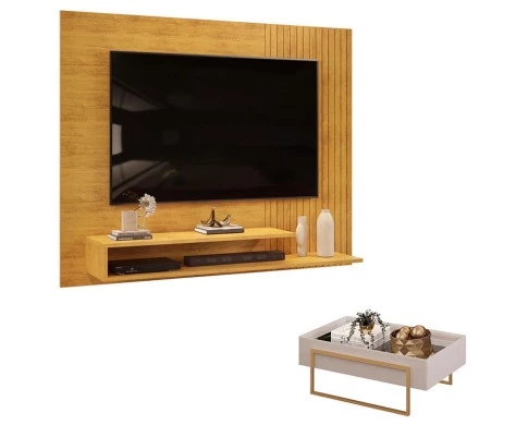 Painel para TV Suspenso Nando Cedro e Mesa de Centro Petri Bali – DJ Móveis