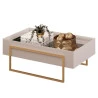 Está procurando móveis para montar sua sala? Apresentamos para você este belo conjunto composto pelo Painel para TV Suspenso e a Mesa de Centro da linha Petri, fabricados pela DJ Móveis. O painel possui um design moderno e detalhes frisados que valorizam o ambiente, com duas prateleiras e um nicho, é perfeita para acomodar seus aparelhos eletrônicos e objetos decorativos. A mesa de centro possui espelho aplicado sobre o tampo, bordas chanfradas e os pés em metal na cor dourado. Combinando praticidade, design e sofisticação, é perfeito para quem está buscando qualidade e sustentabilidade para elevar o estilo do seu ambiente. Confira e aproveite!