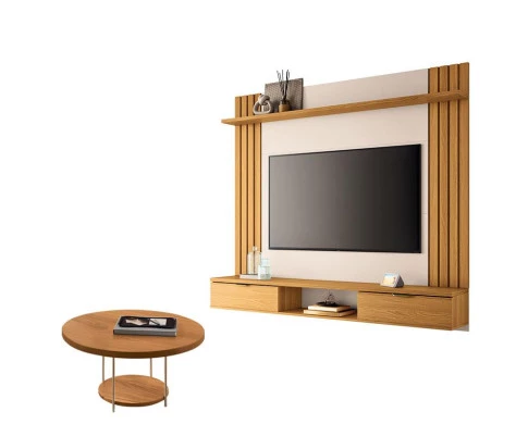 Painel para TV Suspenso Solus e Mesa de Centro SKY Cinamomo Off White – HB Móveis