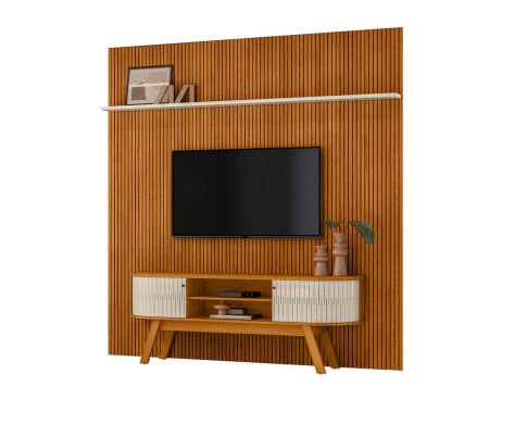 Painel Piso Teto New Guaporé com Rack Bancada Valência New Laguna Cinamomo Off White - Madetec
