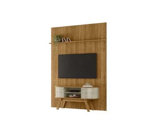 Painel Piso Teto New Interlagos com Bancada Atlanta New Silverstone Cumaru Opala - Madetec