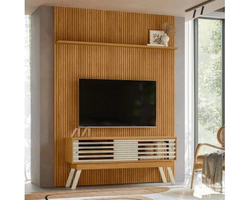 Painel Piso Teto New Interlagos com Rack Bancada Frizz 1.5 New Premium Ambiente Cumaru Opala - Madetec