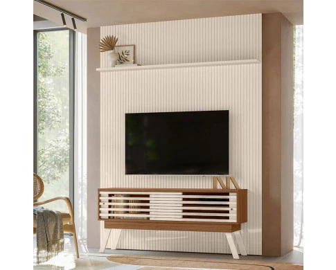 Painel Piso Teto New Interlagos com Rack Bancada Frizz 1.5 New Premium Ambiente Naturale Off White - Madetec
