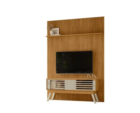 Painel Piso Teto New Interlagos com Rack Bancada Frizz 1.5 New Premium Cumaru Opala - Madetec