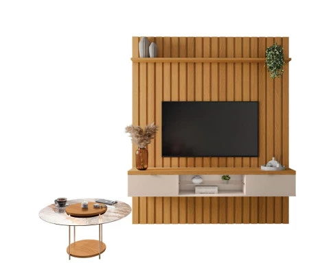 O Painel Ripado Illusion com seu design elegante e de fino acabamento foi desenvolvido pela HB Móveis para completar a sua sala de estar! Um móvel charmoso e moderno para deixar o ambiente mais sofisticado e aconchegante para aproveitar os momentos em família e com amigos e a Mesa de Centro ajuda no conjunto para deixar sua sala de estar perfeita. Confira as características técnicas e aproveite!