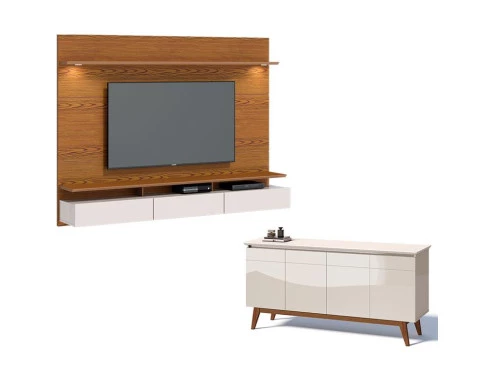Painel Suspenso Decore com Aparador Buffet Classic 1.8 Freijó Off White - Imcal