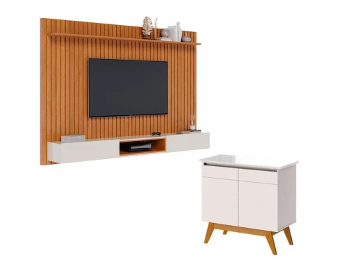 Painel para TV Home Suspenso Ripado Loft 2.2 Nature Off White - Imcal