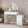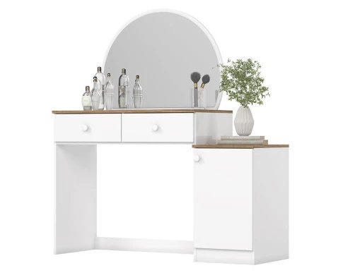 Procurando uma penteadeira com um lindo design para seu quarto, closet ou até mesmo salão de beleza? Temos está bela opção! Apresentamos a Penteadeira Agnes, possui um amplo espaço, porta lateral com prateleira interna, 2 gavetas com corrediças telescópicas para abrir e fechar com suavidade, espelho circular e puxadores em ABS. Um móvel para tornar o dia-a-dia com muito mais praticidade e agregar elegância ao ambiente! Confira mais detalhes e aproveite.