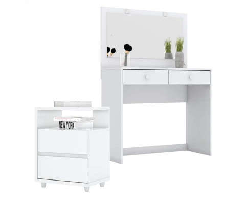 Penteadeira Daila com Led e Mesa de Cabeceira Campeche Branco - Henn