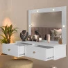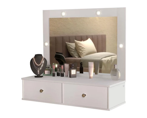 A Penteadeira Suspensa Isis fabricada pela Luapa Móveis é perfeita para quem busca funcionalidade sem abrir mão do estilo, seu formato suspenso oferece leveza visual ao ambiente, além de permitir uma melhor utilização da área inferior, perfeita para cadeiras, puffs ou organização extra. A penteadeira possui 02 gavetas sendo 01 com nicho e corrediças telescópicas, 04 leds integrados garantindo uma iluminação perfeita para maquiagem e cuidados diários, acompanha espelho, MDP 12mm nas laterais das gavetas, restante todo 15mm e 02 réguas para fixar na parede. A Penteadeira Suspensa Isis é perfeita para valorizar seus momentos de autocuidado com muito estilo, aproveite!