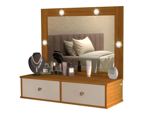 A Penteadeira Suspensa Isis fabricada pela Luapa Móveis é perfeita para quem busca funcionalidade sem abrir mão do estilo, seu formato suspenso oferece leveza visual ao ambiente, além de permitir uma melhor utilização da área inferior, perfeita para cadeiras, puffs ou organização extra. A penteadeira possui 02 gavetas sendo 01 com nicho e corrediças telescópicas, 04 leds integrados garantindo uma iluminação perfeita para maquiagem e cuidados diários, acompanha espelho, MDP 12mm nas laterais das gavetas, restante todo 15mm e 02 réguas para fixar na parede. A Penteadeira Suspensa Isis é perfeita para valorizar seus momentos de autocuidado com muito estilo, aproveite!