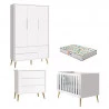 Quarto de Bebê 3 Portas e Cômoda Gaveteiro Theo Branco Pés Madeira Natural com Colchão Gazin – Reller
