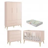 Quarto de Bebê 3 Portas e Cômoda Gaveteiro Theo Rosa Pés Madeira Natural com Colchão Gazin – Reller