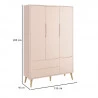 Guarda Roupa Infantil Theo 3 Portas Rosa com Pés Madeira Natural – Reller