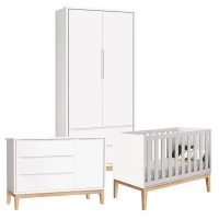 Quarto de Bebê Classic 2 Portas Cômoda com Porta Branco com Pés Madeira Natural - Reller