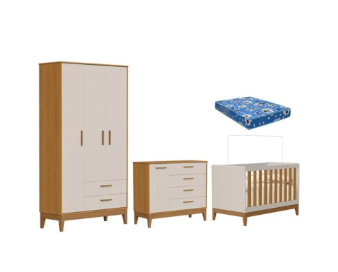 Quarto de Bebê Flip Areia Acetinado Savana com Colchão Ortobom - Reller