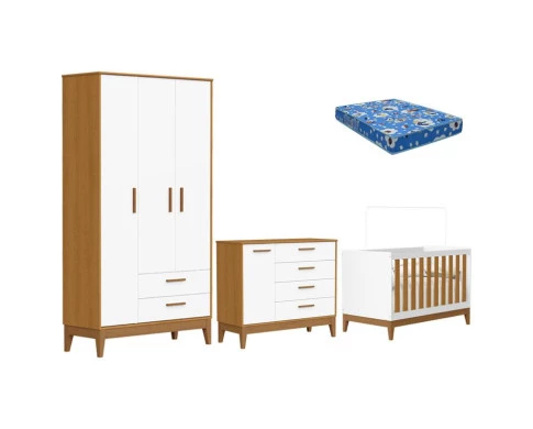 Quarto de Bebê Flip Branco Acetinado Savana com Colchão - Reller