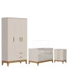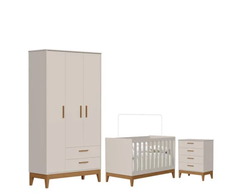 O Quarto de Bebê Flip da Reller é a escolha ideal para quem busca praticidade, beleza e conforto em um só conjunto. Com design moderno o kit com Roupeiro moderno é composto por um berço seguro e funcional, desenvolvido dentro das normas de qualidade, que garante noites tranquilas e acolhedoras. A cômoda gaveteiro oferece amplo espaço interno, equipada com corrediças telescópicas que proporcionam abertura suave, além de puxadores em MDF revestido e pés em madeira. Desenvolvido pela Reller com toda praticidade.