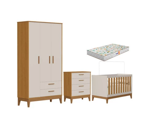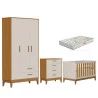 Quarto de Bebê Flip com Cômoda Gaveteiro Areia Acetinado Savana com Colchão Gazin - Reller