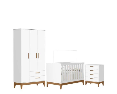O Quarto de Bebê Flip da Reller é a escolha ideal para quem busca praticidade, beleza e conforto em um só conjunto. Com design moderno o kit com Roupeiro moderno é composto por um berço seguro e funcional, desenvolvido dentro das normas de qualidade, que garante noites tranquilas e acolhedoras. A cômoda gaveteiro oferece amplo espaço interno, equipada com corrediças telescópicas que proporcionam abertura suave, além de puxadores em MDF revestido e pés em madeira. Desenvolvido pela Reller com toda praticidade.