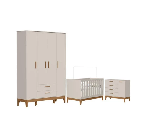 O Quarto de Bebê Flip da Reller é a escolha ideal para quem busca praticidade, beleza e conforto em um só conjunto. Com design moderno o kit com Roupeiro moderno é composto por um berço seguro e funcional, desenvolvido dentro das normas de qualidade, que garante noites tranquilas e acolhedoras. A Cômoda Sapateira oferece amplo espaço interno, equipada com corrediças telescópicas que proporcionam abertura suave, além de puxadores em MDF revestido e pés em madeira. Desenvolvido pela Reller com toda praticidade.
