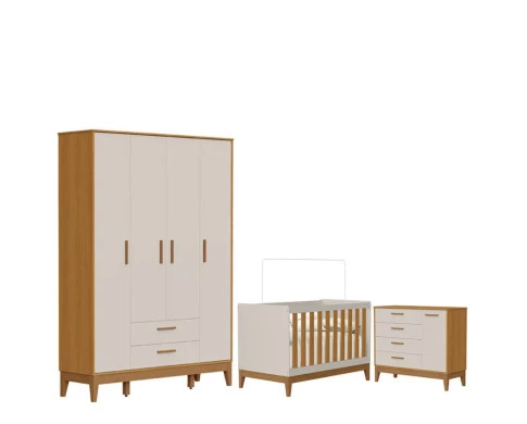 O Quarto de Bebê Flip da Reller é a escolha ideal para quem busca praticidade, beleza e conforto em um só conjunto. Com design moderno o kit com Roupeiro moderno é composto por um berço seguro e funcional, desenvolvido dentro das normas de qualidade, que garante noites tranquilas e acolhedoras. A Cômoda Sapateira oferece amplo espaço interno, equipada com corrediças telescópicas que proporcionam abertura suave, além de puxadores em MDF revestido e pés em madeira. Desenvolvido pela Reller com toda praticidade.