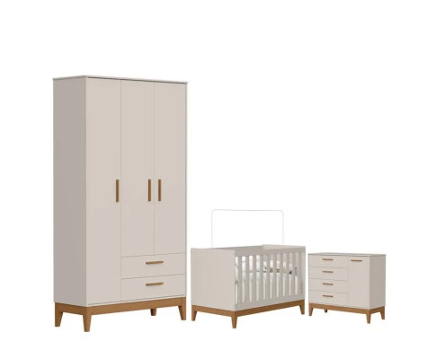 O Quarto de Bebê Flip da Reller é a escolha ideal para quem busca praticidade, beleza e conforto em um só conjunto. Com design moderno o kit com Roupeiro moderno é composto por um berço seguro e funcional, desenvolvido dentro das normas de qualidade, que garante noites tranquilas e acolhedoras. A Cômoda Sapateira oferece amplo espaço interno, equipada com corrediças telescópicas que proporcionam abertura suave, além de puxadores em MDF revestido e pés em madeira. Desenvolvido pela Reller com toda praticidade.