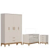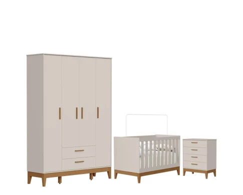 O Quarto de Bebê Flip da Reller é a escolha ideal para quem busca praticidade, beleza e conforto em um só conjunto. Com design moderno o kit com Roupeiro moderno é composto por um berço seguro e funcional, desenvolvido dentro das normas de qualidade, que garante noites tranquilas e acolhedoras. A Cômoda Gaveteiro oferece amplo espaço interno, equipada com corrediças telescópicas que proporcionam abertura suave, além de puxadores em MDF revestido e pés em madeira. Desenvolvido pela Reller com toda praticidade.