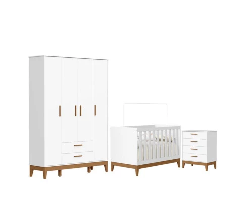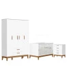 O Quarto de Bebê Flip da Reller é a escolha ideal para quem busca praticidade, beleza e conforto em um só conjunto. Com design moderno o kit com Roupeiro moderno é composto por um berço seguro e funcional, desenvolvido dentro das normas de qualidade, que garante noites tranquilas e acolhedoras. A Cômoda Gaveteiro oferece amplo espaço interno, equipada com corrediças telescópicas que proporcionam abertura suave, além de puxadores em MDF revestido e pés em madeira. Desenvolvido pela Reller com toda praticidade.