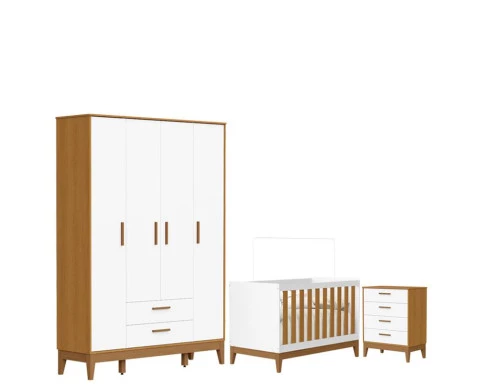O Quarto de Bebê Flip da Reller é a escolha ideal para quem busca praticidade, beleza e conforto em um só conjunto. Com design moderno o kit com Roupeiro moderno é composto por um berço seguro e funcional, desenvolvido dentro das normas de qualidade, que garante noites tranquilas e acolhedoras. A Cômoda Gaveteiro oferece amplo espaço interno, equipada com corrediças telescópicas que proporcionam abertura suave, além de puxadores em MDF revestido e pés em madeira. Desenvolvido pela Reller com toda praticidade.
