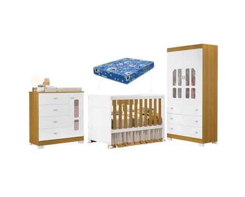 Quarto de Bebê New Katatau Branco Acetinado Savana com Colchão Ortobom– Reller