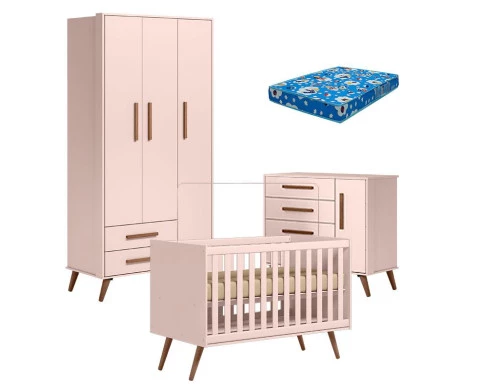 Quarto de Bebê Q Encanto Retrô Rosa com Colchão Tend Tudo - Qmovi