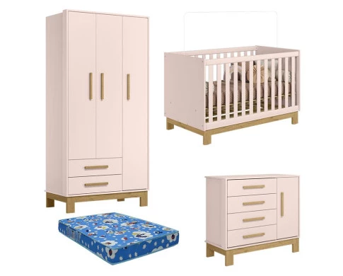 Quarto de Bebê Q Encanto Slim Rosa Acetinado com Colchão Tend Tudo – Qmovi