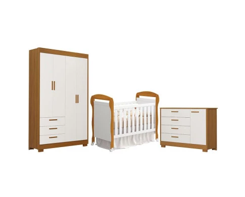 Quarto de Bebê Zaki e Berço Americano Danny Branco Acetinado Savana - Reller